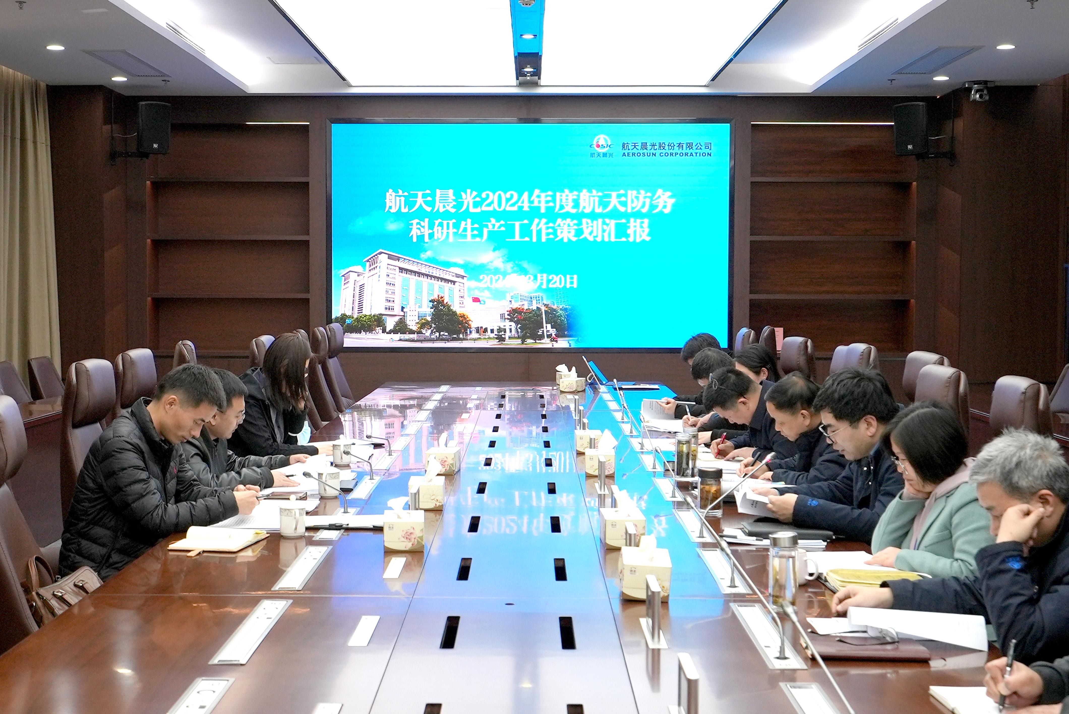 近日,集团公司科研生产部副部长杨扬一行到航天晨光检查指导2024年度航天防务科研生产工作策划情况,并听取了专题汇报。公司党委书记、总经理文树梁,本部有关部门领导、所属相关单位领导参加会议,会议由文树梁主持。